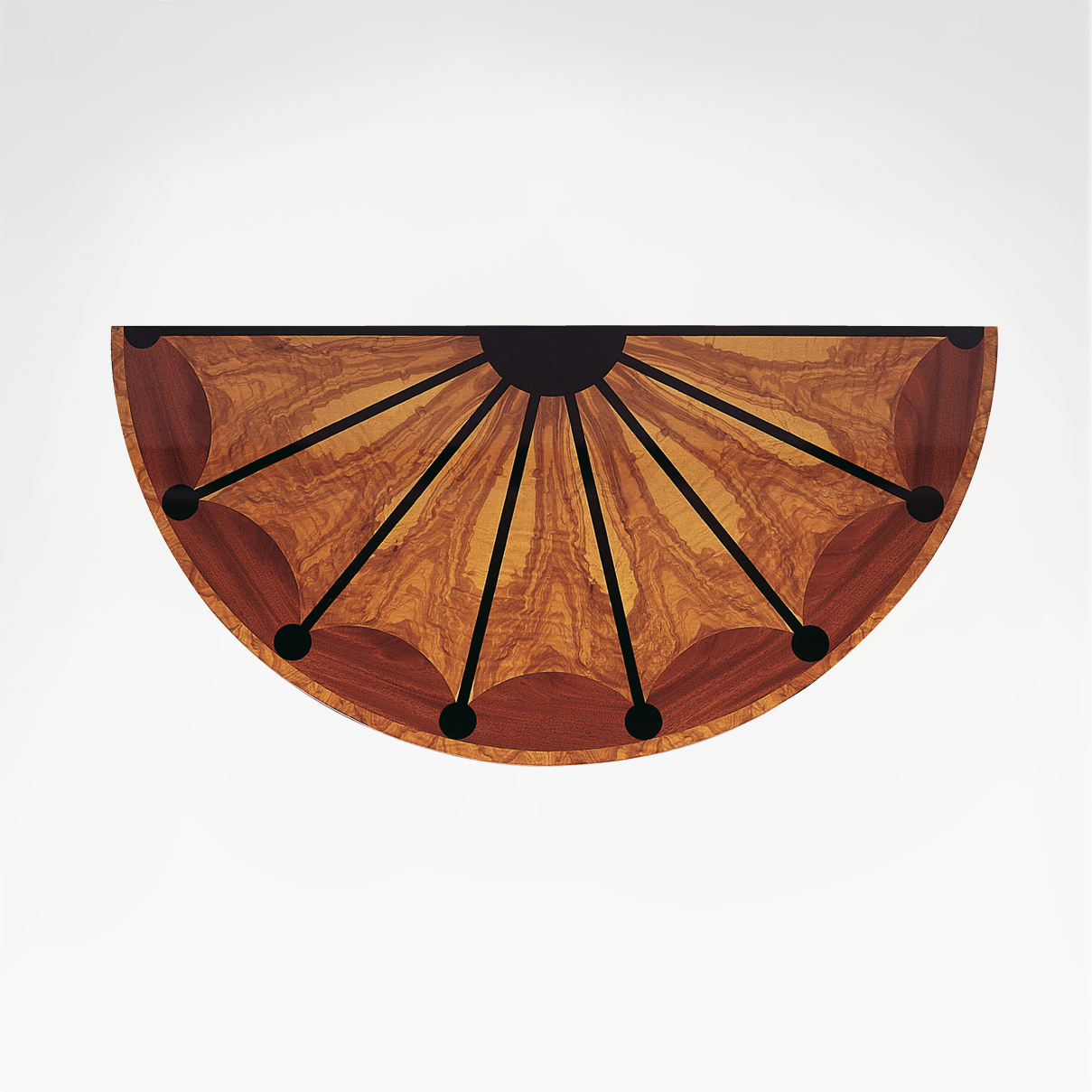 Standard sizes – 120x60x85h cm. This elegant console rests on a stunning quartet of curved mahogany legs, finishing with rolled feet picked out in gold leaf. The legs sit between a base and plinth also handcrafted from mahogany and edged with black lacquer wood, while the tabletop that brings the console together is solid olive wood, inlayed with mahogany. This console can be custom made. Upon request specific modifications can be applied to dimensions, design, finish or materials. Contact us for more details on our custom made production.