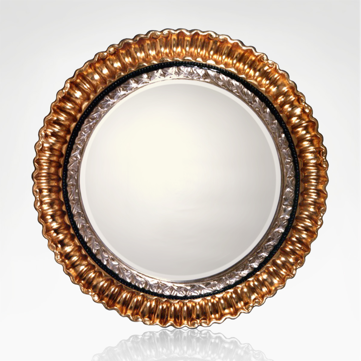 Wooden structure in gold leaf, silver leaf and black lacquered and mirror.