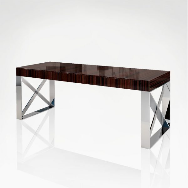This desk is raised up on wooden structure in ebony and steel legs.