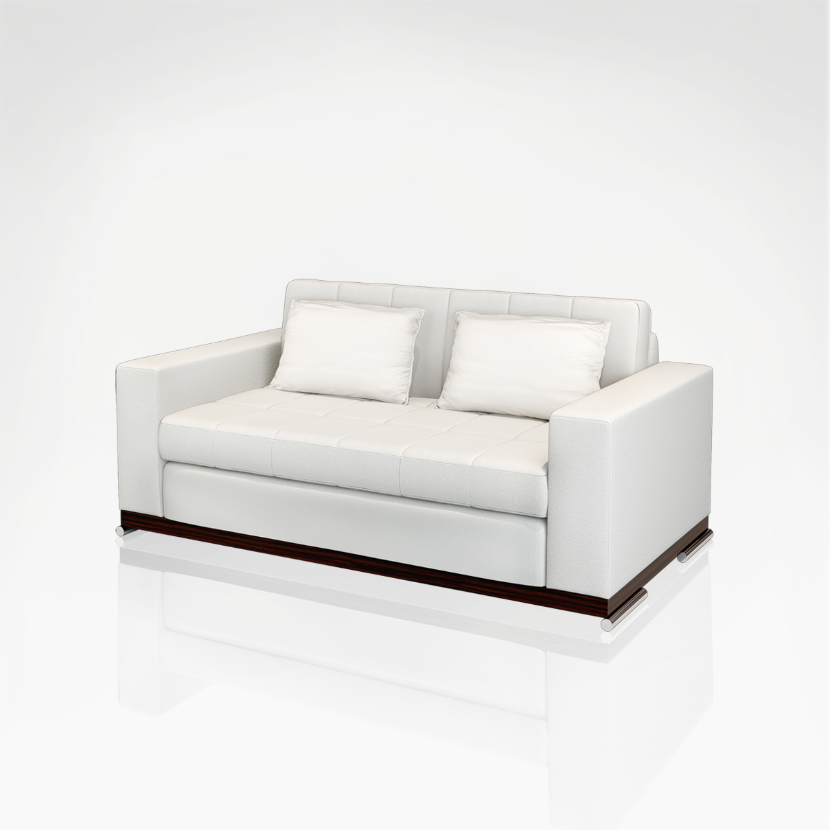 This sofa is raised up on ebony wooden structure upholstered and steel legs.